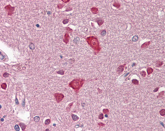Anti-GDF5 / GDF-5 antibody IHC staining of human brain, cortex. |