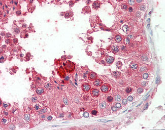 Anti-PK2 / PROK2 antibody IHC staining of human testis. |