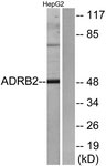 Western blot of extracts from HepG2 cells, using ADRB2 Antibody. |