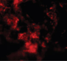 Immunofluorescence of MFSD2A in Rat Lung cells with MFSD2A antibody at 20 ug/ml.