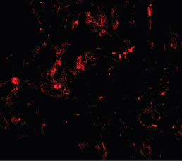 Immunofluorescence of GDF1 in human lung tissue with GDF1 antibody at 20 ug/ml.