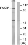 Western blot of extracts from COS7 cells, using FAKD1 Antibody. |