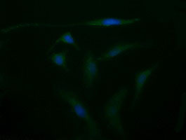 Immunofluorescent staining of HeLa cells using anti-ENG mouse monoclonal antibody. |