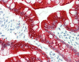Anti-KRT20 / Cytokeratin 20 antibody IHC staining of human small intestine. |