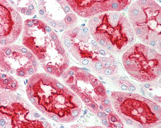 Anti-KLK6 / Kallikrein 6 antibody IHC staining of human kidney.