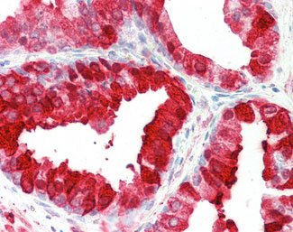 Anti-KLK6 / Kallikrein 6 antibody IHC staining of human prostate. |