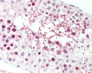 Anti-CENPU / MLF1IP antibody IHC staining of human testis. |