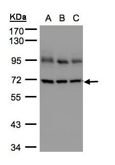 Sample (30 ug of whole cell lysate). A: NIH-3T3. 7.5% SDS PAGE. Lamin B1 antibody diluted at 1:5000.