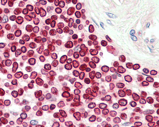 Anti-LMNB1 / Lamin B1 antibody IHC staining of human spleen. |