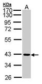 JAM-B antibody detects JAM2 protein by Western blot analysis.