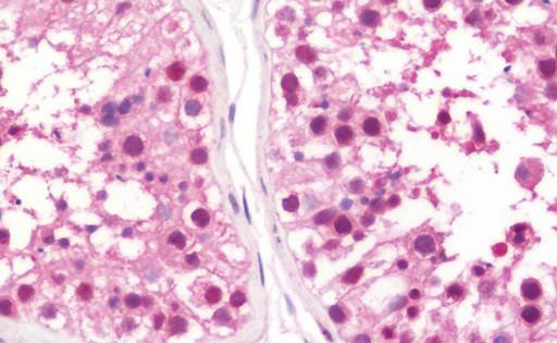 Anti-HT2A / TRIM32 antibody IHC staining of human testis.