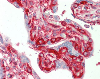 Anti-TFG antibody IHC staining of human placenta. |