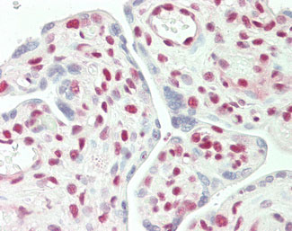 Anti-STAG2 antibody IHC staining of human placenta. |