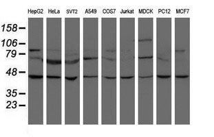 Western blot of extracts (35 ug) from 9 different cell lines by using anti-SKIL monoclonal...