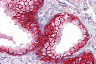 Reacts with the first EGF repeat in the extracellular domain of Ep-CAM. The epitope is sensitive for reducing agents. Detects Ep-CAM in most simple, pseudostratified and transitional epithelia and in the majority of human carcinomas.