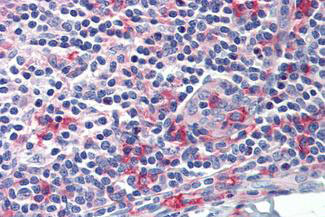 Anti-FCGR1A / CD64 antibody IHC staining of human tonsil.