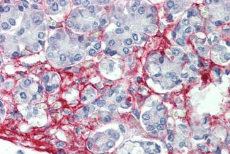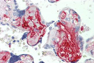 Anti-FN1 / Fibronectin antibody IHC staining of human placenta.