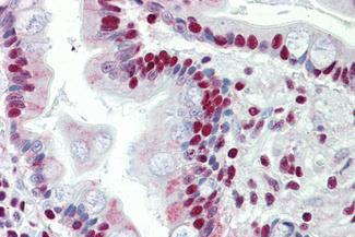 Anti-SET / TAF-I antibody IHC staining of human small intestine.