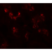 Immunofluorescence of UHRF1BP1 in human kidney tissue with UHRF1BP1 antibody at 20 g/mL.