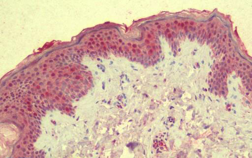 Anti-KIAA0692 / ANKLE2 antibody IHC staining of human skin.
