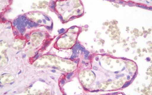Anti-CDH1 / E Cadherin antibody IHC staining of human placenta.