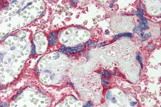 Anti-TACC1 antibody IHC staining of human placenta.