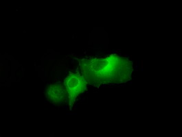 Anti-DAPK2 mouse monoclonal antibody immunofluorescent staining of COS7 cells transiently...