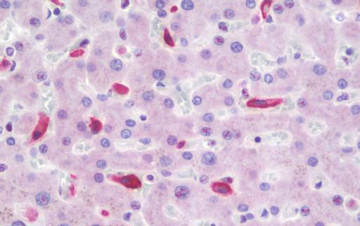 Anti-CD163 antibody IHC staining of human liver.