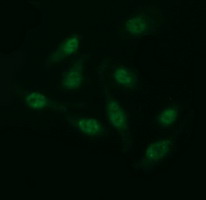 Immunofluorescent staining of HeLa cells using anti-CD163 mouse monoclonal antibody.