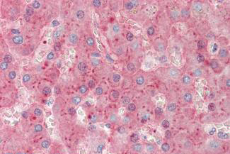 Anti-VTN / Vitronectin antibody IHC staining of human liver. |