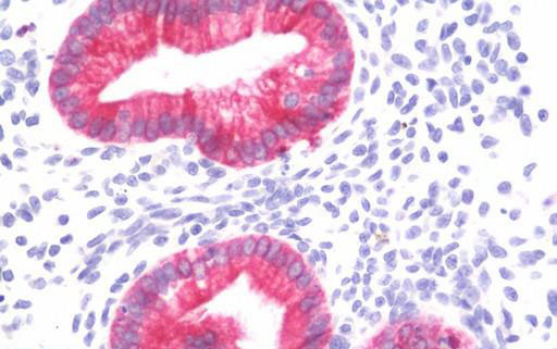Anti-EMA / MUC1 antibody IHC staining of human uterus, endometrium.