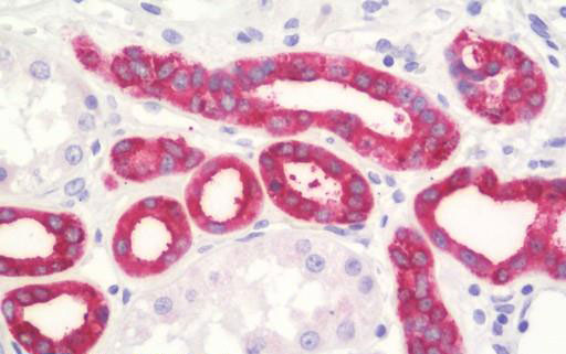 Anti-EMA / MUC1 antibody IHC staining of human kidney. |