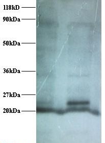 Western blot of 6.8 kDa mitochondrial proteolipid antibody at 2 ug/ml. |