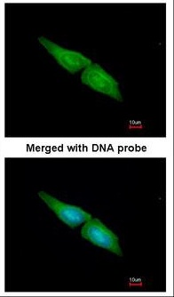 Immunofluorescence of paraformaldehyde-fixed HeLa using MAPK4 antibody at 1:200 dilution.