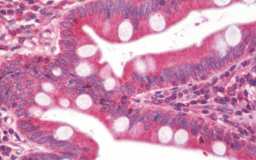 Anti-HRAS / H-Ras antibody IHC staining of human small intestine.