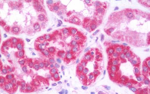 Anti-LTA / TNF Beta antibody IHC staining of human kidney.