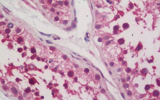 Anti-Dipeptidylpeptidase 8 / DPP8 antibody IHC staining of human testis.