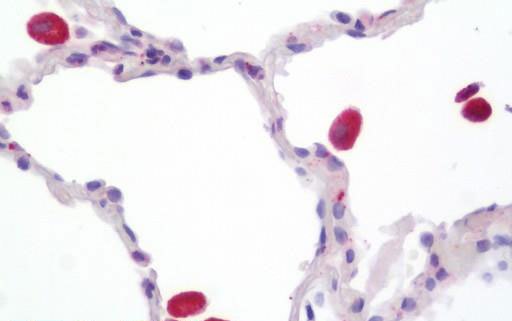 Anti-CXCL3 / GRO Gamma antibody IHC staining of human lung. |