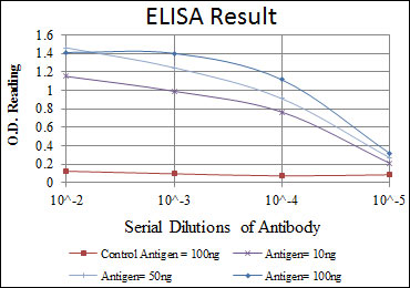 Red: Control Antigen (100ng);Purple: Antigen (10ng);Green: Antigen (50ng);Blue: Antigen (100ng);