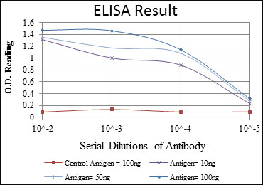 Red: Control Antigen (100ng);Purple: Antigen (10ng);Green: Antigen (50ng);Blue: Antigen (100ng);