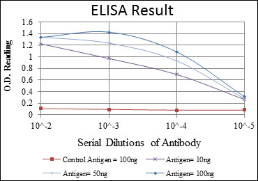 Red: Control Antigen (100ng);Purple: Antigen (10ng);Green: Antigen (50ng);Blue: Antigen (100ng);