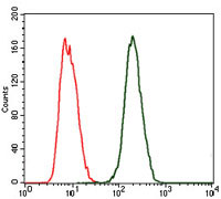 Figure 2: Flow cytometric analysis of MCF-7 cells using CRP mouse mAb (green) and negative control (red). |