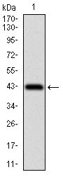Figure 1: Western blot analysis using PAPLN mAb against human PAPLN recombinant protein. (Expected MW is 36.4 kDa)