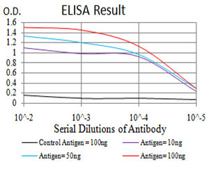 Figure 1:Black line: Control Antigen (100 ng);Purple line: Antigen (10ng); Blue line: Antigen (50 ng); Red line:Antigen (100 ng)