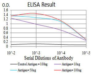 Figure 1:Black line: Control Antigen (100 ng);Purple line: Antigen (10ng); Blue line: Antigen (50 ng); Red line:Antigen (100 ng)