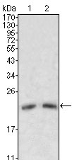 Figure 1: Western blot analysis using ApoM mouse mAb against human serum (1, 2).