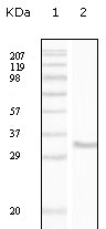 Figure 1: Western blot analysis using CD34 mouse mAb against truncated CD34 recombinant protein.