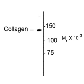 Western blot of rat lung lysate showing specific immunolabeling of the ~ 140k collagen protein.