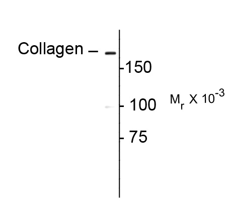 Western blot of rat lung lysate showing specific immunolabeling of the ~180 k collagen 1.