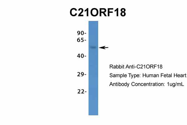 Host: Rabbit Target Name: C21ORF18 Sample Tissue: Human Fetal Heart Antibody Dilution: 1.0μg/ml